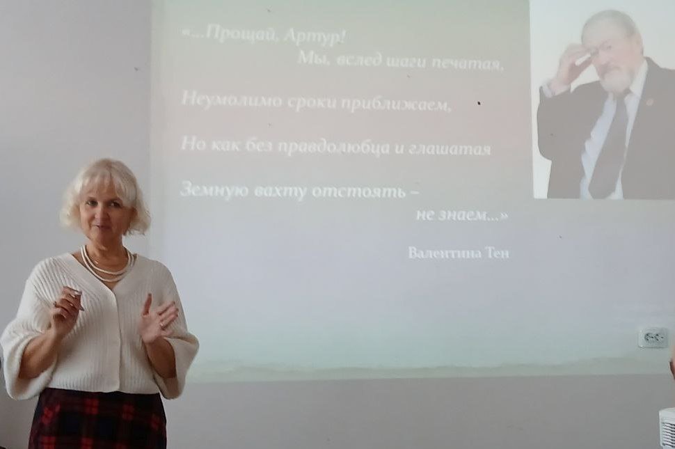 Собравшиеся услышали голос «правдолюбца», записанный на барнаульском радио «На просторах Алтая», вместе исполнили одну из его любимых песен «Осенние листья» на двух языках.