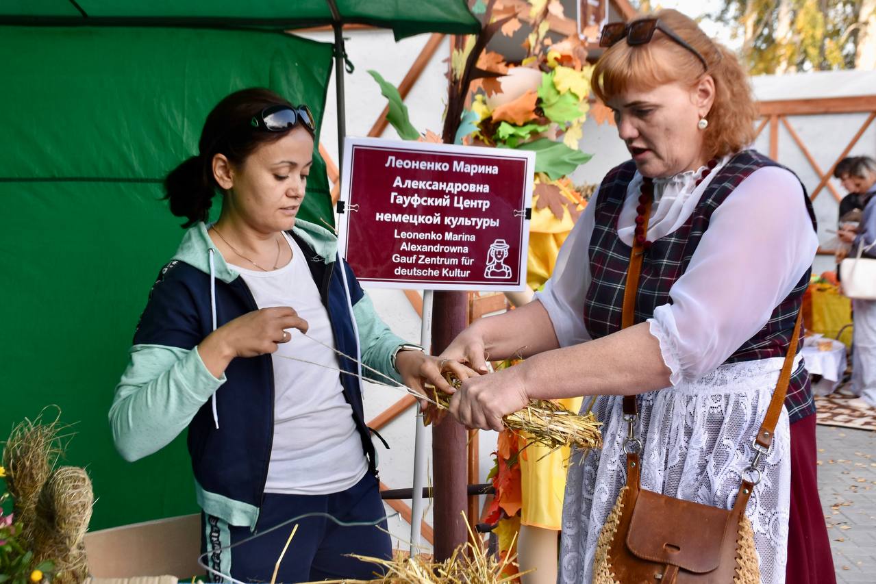 В с. Азово прошёл очередной районный фестиваль «Праздник урожая. Азово - 2025». С каждым годом праздник набирает силу, становится ярче и масштабнее. Так, в этом году участниками праздничного шествия и культурной программы стали творческие коллективы центров немецкой культуры не только Азовского, но и Одесского, Шербакульского районов и г. Омска. Этнокультурная работа была представлена мастер-классами по прикладному творчеству, ремёслам и танцам российских немцев, музыкальным и песенным творчеством, играми российских немцев, выставкой-дегустацией национальных блюд, тематическими фотозонами и др.
