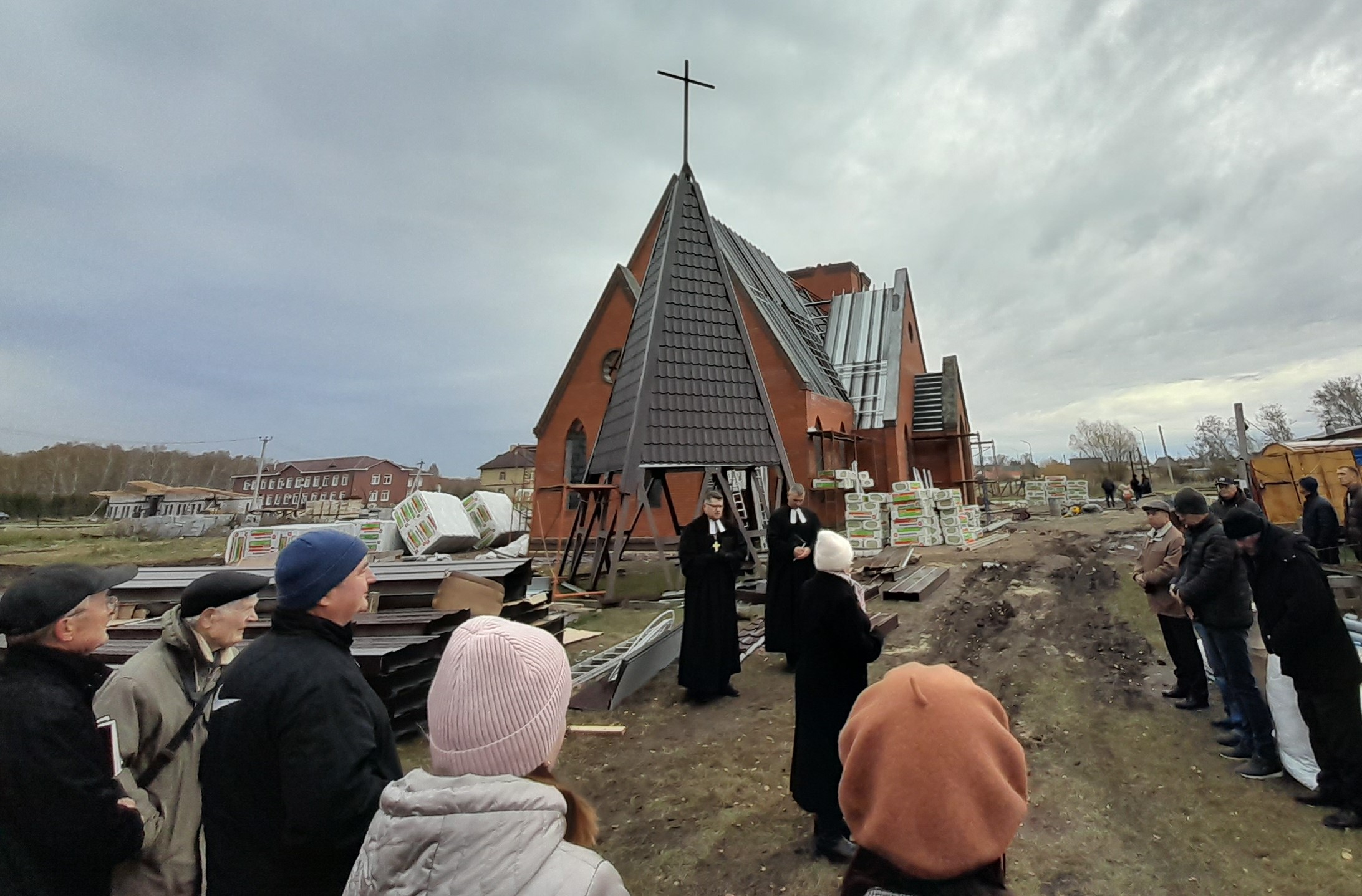 На торжественном молебне присутствовали представители Региональной и местной общественных организаций российских немцев Омской области. Строительство кирхи ведётся на территории этнографического комплекса «Немецкое подворье» на пожертвования граждан и предпринимателей, при активном взаимодействии Фонда "Соотечественники" и местной религиозной общины.