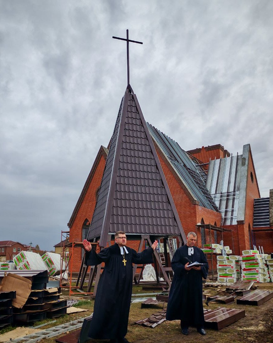 В с. Азово Азовского немецкого национального района состоялось значимое историческое событие как для района, так и для Евангелическо-лютеранской церкви — торжественное освящение и установка креста на здании строящейся лютеранской кирхи! Заместитель епископа Евангелическо-Лютеранской Церкви Урала, Сибири и Дальнего Востока Владимир Виноградов и пастор местной лютеранской общины Евгений Мауль совершили молебен.