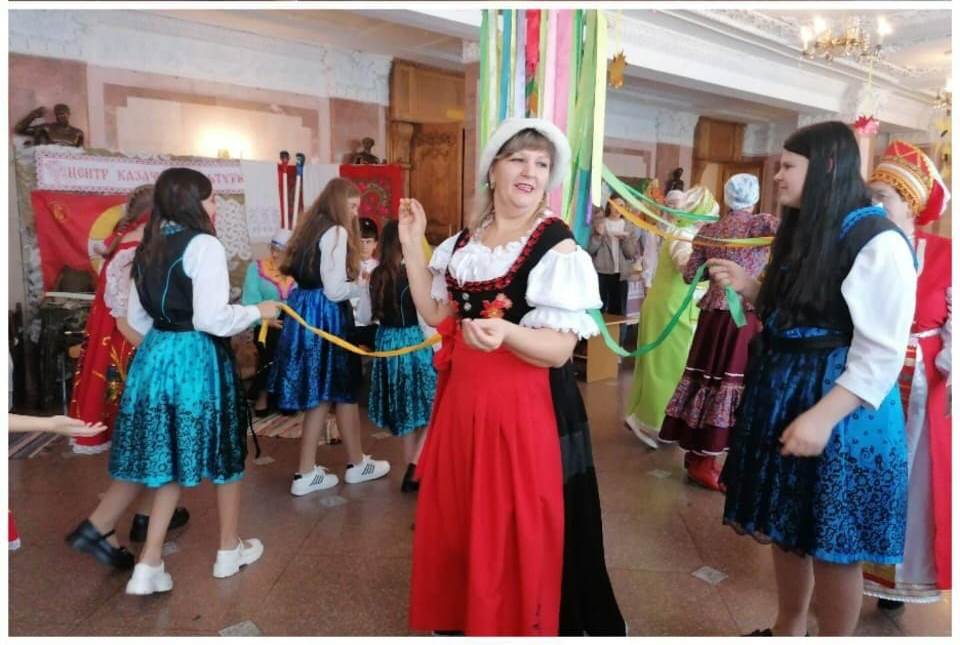 На «Немецком подворье» новоскатовцы рассказали о праздниках и традициях российских немцев, исполнили народные песни, вместе с гостями танцевали национальный танец с лентами «Бэндертанц».
