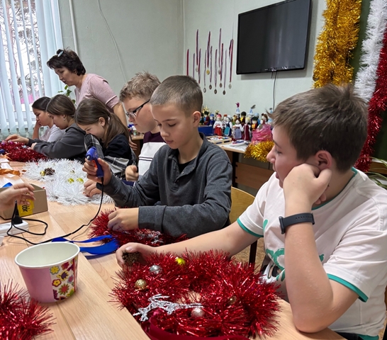 Под руководством Инны Орловской дети с увлечением приступили к созданию своих собственных венков. Каждый ребёнок смог проявить свою фантазию и создать уникальный венок, который станет украшением его дома в преддверии праздника.